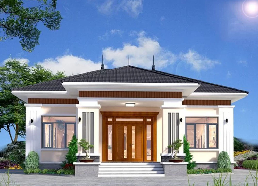 Nên chọn gam sáng và trung tính như trắng kem, be, vàng nhạt, xám nhẹ. Những màu này giúp ngôi nhà trông rộng và thoáng hơn, đồng thời làm nền để mái và cửa nổi bật.