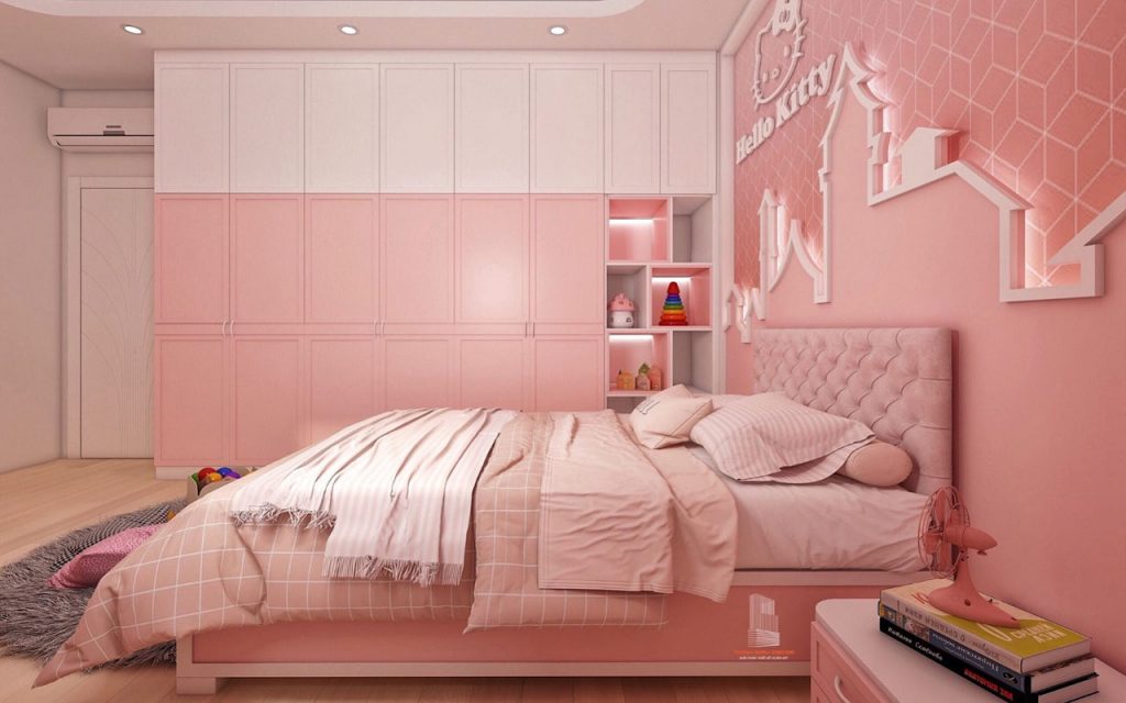 Màu hồng là màu sắc mang vẻ đẹp của sự lãng mạn, rất phù hợp với không gian phòng ngủ của những trẻ em gái. Trong năm 2022, màu sơn này dường như được ưa chuộng nhiều hơn những biến thể phối màu mới ra đời.