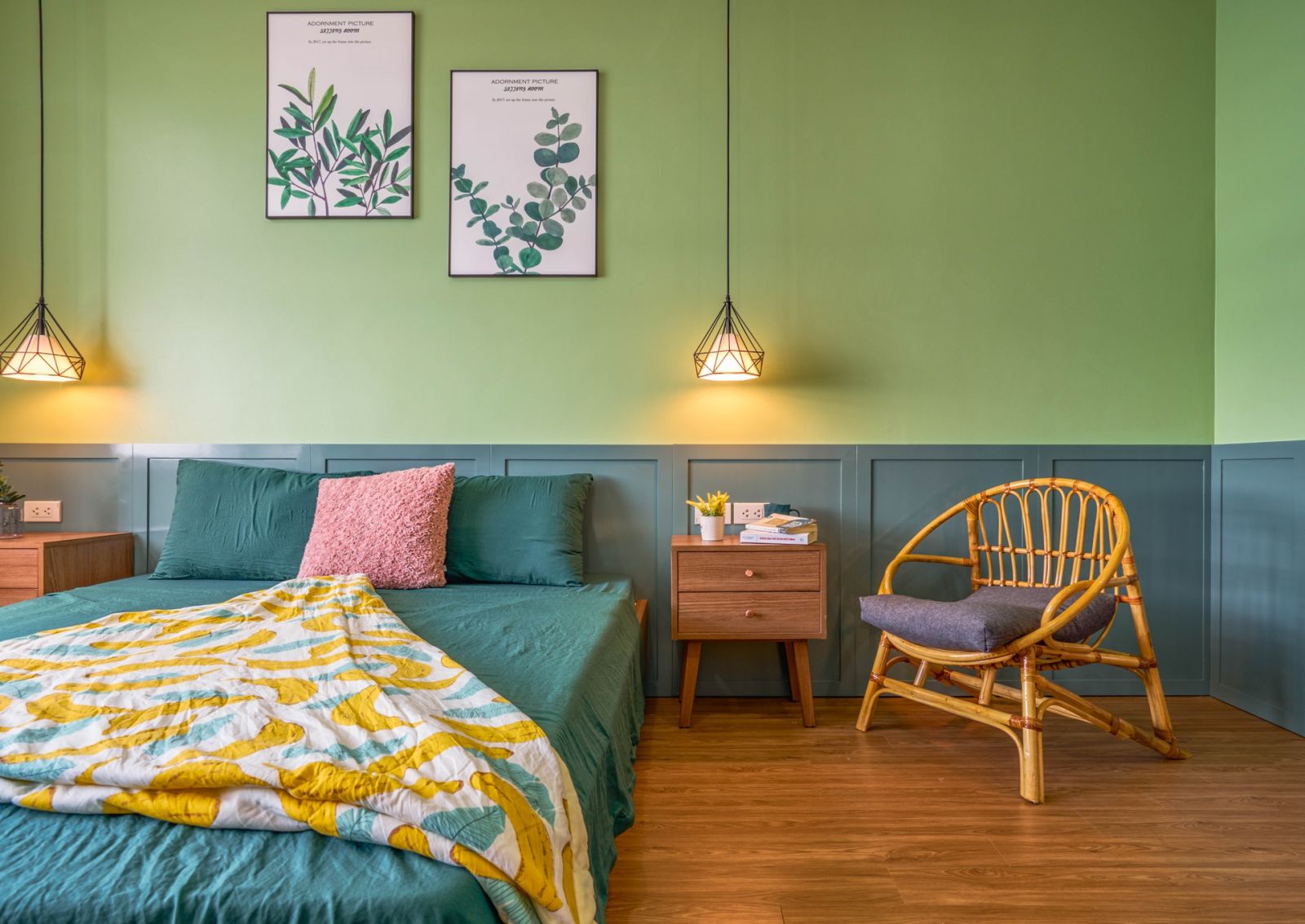 + Màu xanh vàng cho màu sơn phòng ngủ mệnh mộc của bé trông thật bắt mắt